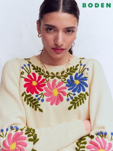 Boden Cream Davina Puff Sleeve Jumper