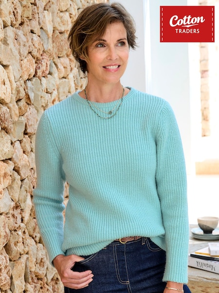 Cotton Traders Nude Signature Button Neck Crew Jumper
