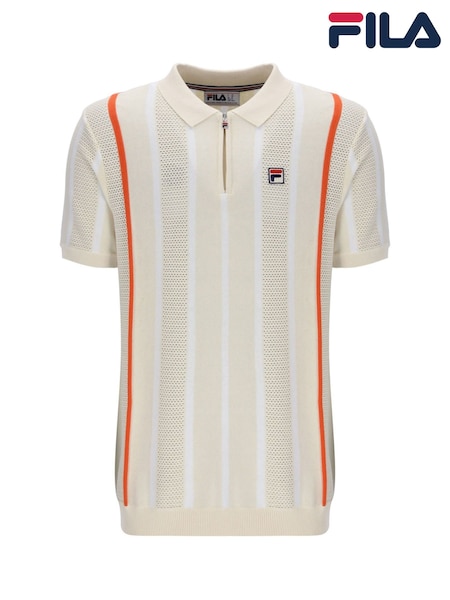 Fila Cream Giorgiocrochet Patchwork Knitted Polo Shirt With Zip Neck