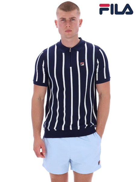 Fila Blue Giorgiocrochet Patchwork Knitted Polo Shirt With Zip Neck