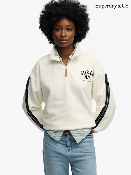 Superdry Cream Country Club Appliqué Half Zip Jumper