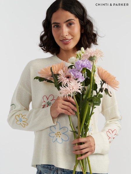 Chinti & Parker Cream Wool Cashmere Garden Flowers Jumper