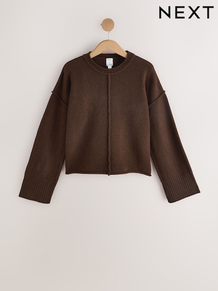 The Set 3 Pack Fine Knit Crew Neck Jumper Chocolate Brown/Light Brown/Cream