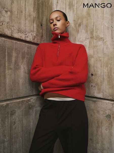Mango Red Zip Through Long Sleeve Chunky Knit Jumper