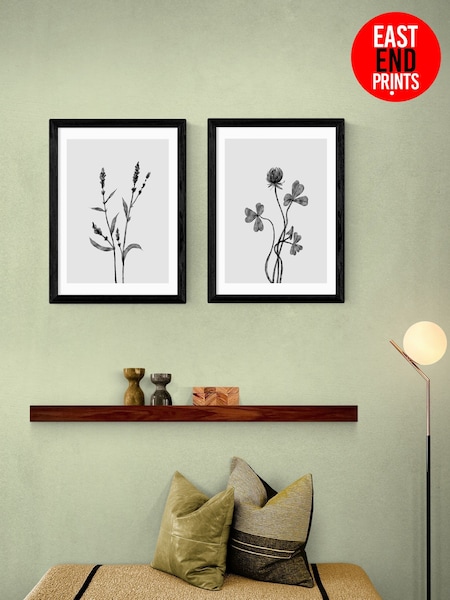 East End Prints Set of 2 Black Delicate Florals Wall Arts Print by Dan Hobday