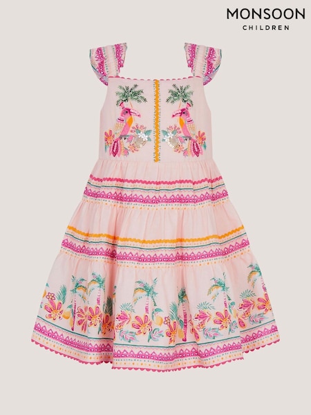 Monsoon Pink Baby Tina Tropical Toucan Tier Dress