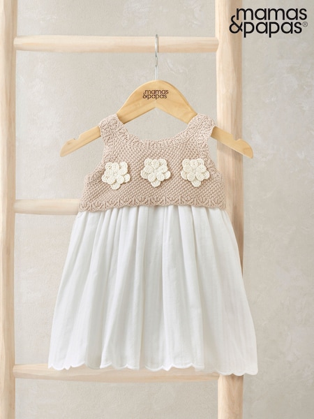 Mamas & Papas Brown Crochet Woven Mix Dress