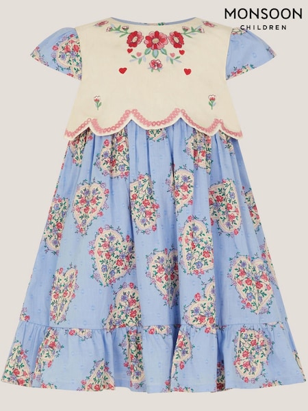 Monsoon Blue Baby Heart Print Embroidered Panel Dress