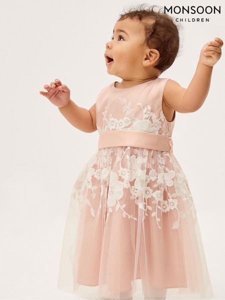 Monsoon Pink Baby Felicity Embroidered Floral Dress