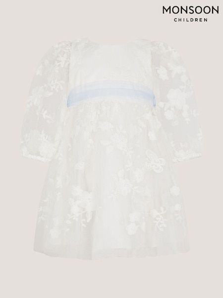 Monsoon Cream Baby Beatrice Floral Embroidered Tulle Dress