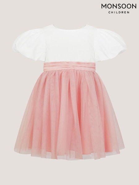 Monsoon Pink Baby Puff Sleeve Sateen Tulle Party Dress