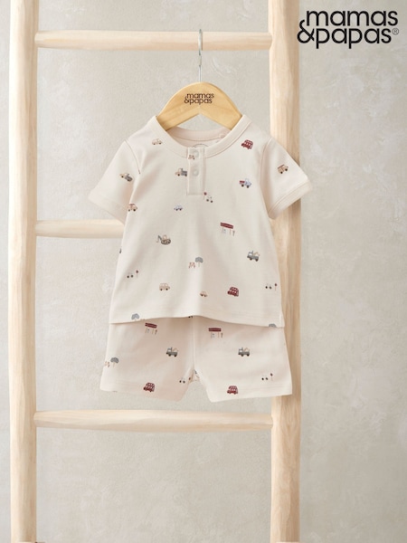 Mamas & Papas Cream Little Explorer Jersey Short Pyjamas