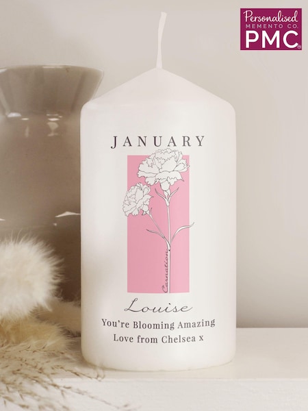 Personalised Birth Flower Pillar Candle by PMC