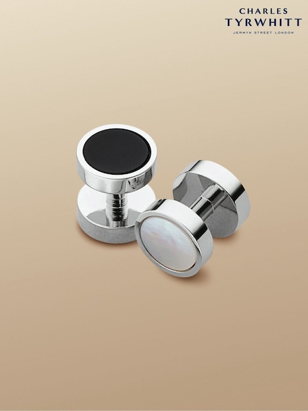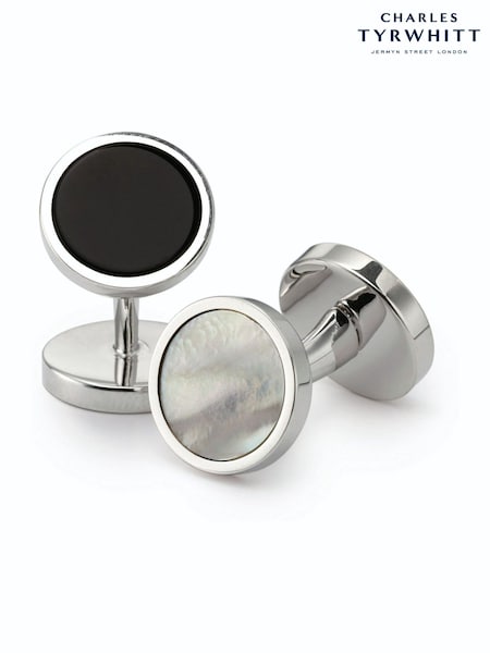 Charles Tyrwhitt Grey Mother Of Pearl And Onyx Evening Cufflinks