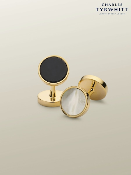 Charles Tyrwhitt Yellow Mother of Pearl and Onyx Evening Cufflinks