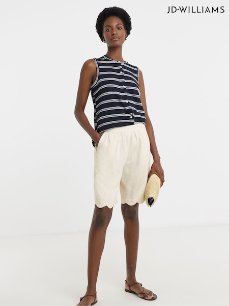 JD Williams Cream Scallop Edge Linen Mix Shorts