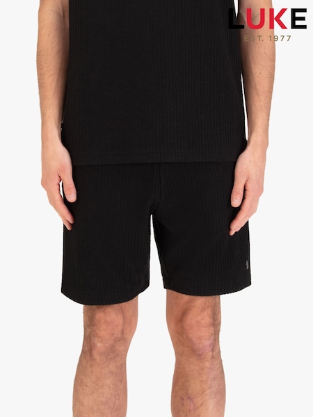 Luke 1977 Black Waffle Textured Shorts