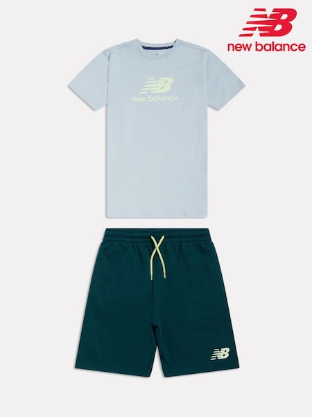 New Balance Stone Blue Stacked Logo T-Shirt & Shorts Set