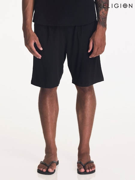 Religion Black Slub Shorts