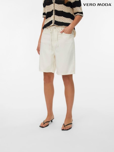 VERO MODA Cream Mid Rise Denim Bermuda Shorts