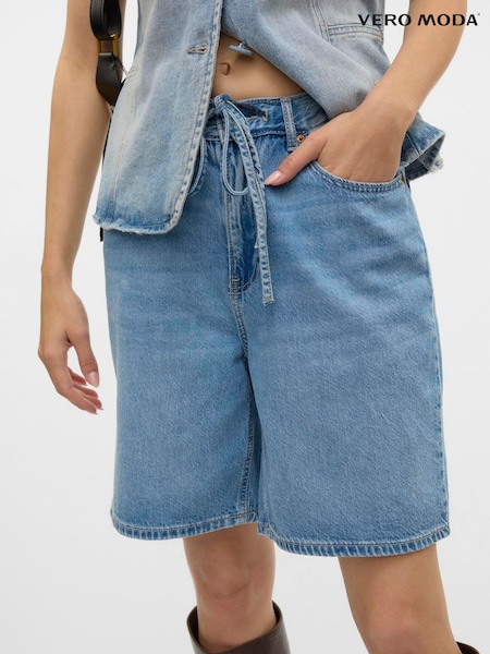 VERO MODA Blue Mid Rise Denim Bermuda Shorts