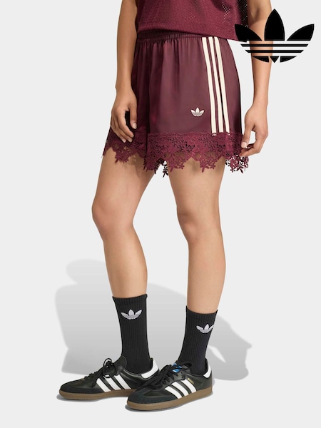adidas Originals Maroon Red Firebird Satin Lace Trim Shorts