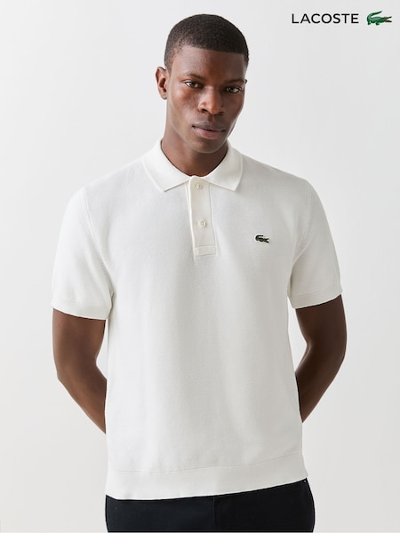 Lacoste White Fine Knit Moss Stitch Cotton Polo Collar Jumper