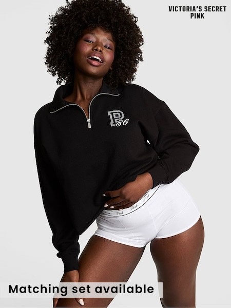 Victoria's Secret Pink Black Half Zip Fleece Sweatshirt