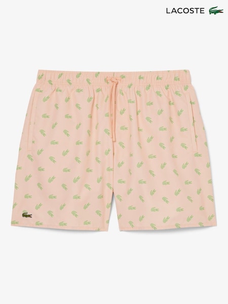 Lacoste Pink Mid Length Crocodile Print Swim Shorts