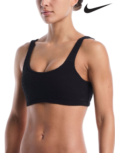 Nike Black Shoreline Pucker Textured Bralette Bikini Top