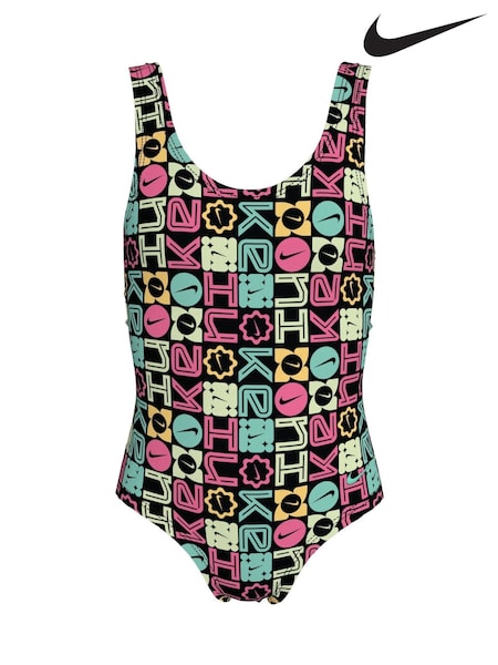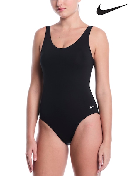 Nike Black Logo Block U-Back One Piece Swimsuit