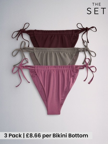 The Set High Leg 3 Pack Tie Bikini Bottoms Pink/Grey