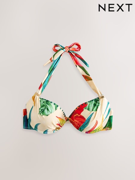 Red Tropical Padded Shaping Wired Halter Bikini Top