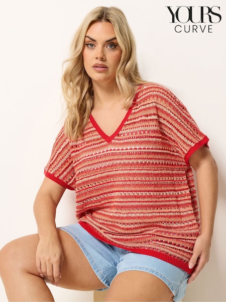Yours Curve Red Boxy Stripe Cover-Up