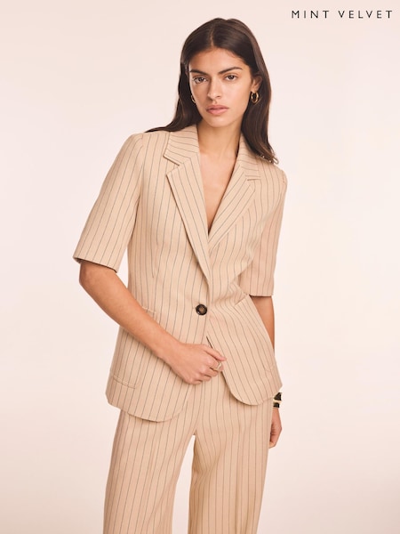 Mint Velvet Brown Pin Stripe Short Sleeve Blazer