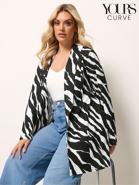 Yours Curve Black Mono Spot Print Scuba Blazer