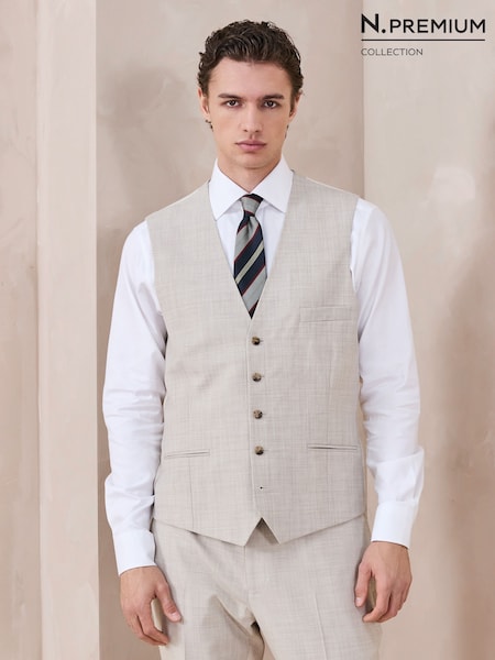 Neutral N.Premium Wool Blend Motionflex Marl Texture Suit Waistcoat