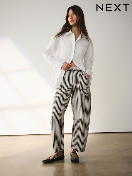 White/Black Polka Dot Relaxed Boxy Elbow Length Crew Neck T-Shirt