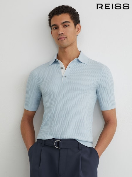 Reiss Soft Blue Era Textured-Knit Half-Button Polo Shirt