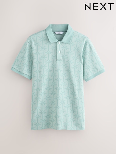 Aqua Blue Short Sleeve Jacquard Pattern Polo Shirt