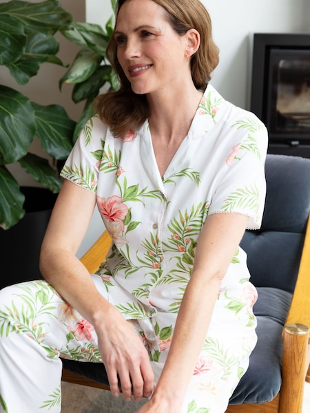 Nora Rose White Floral Print Lace Trim Pyjamas Set