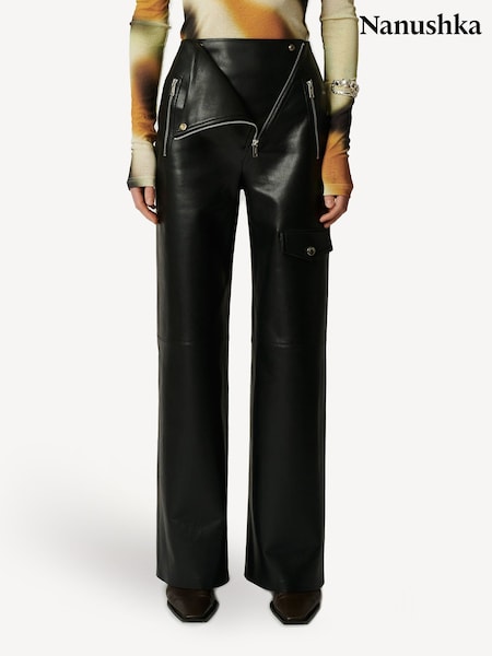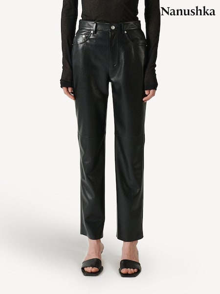 Nanushka Black Hayes Leather Straight Leg Trousers