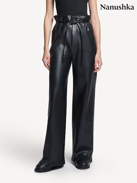 Nanushka Black Harlee Leather Wide Leg Trousers