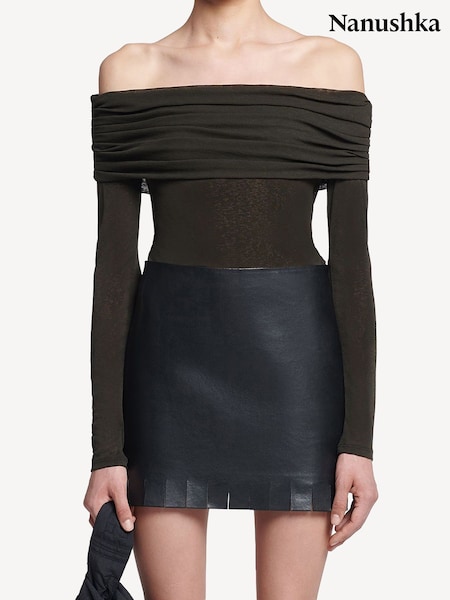 Nanushka Black Amily Stretch Bardot Top