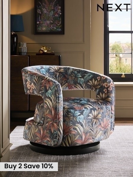 Opulent Velvet Tropical Print Ivy Swivel Accent Chair