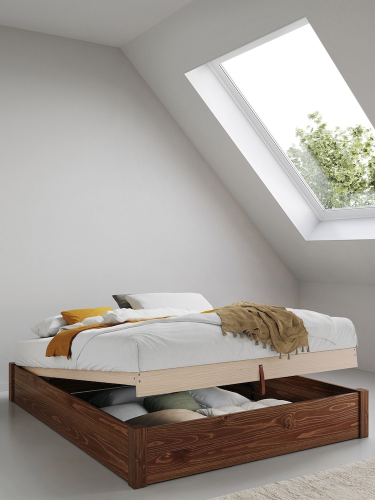 With sleek simple lines, the solid wood Ottoman Storage Bed embraces a modern look with masses of hidden storage under the hinged slatted mattress base. With super strong fixings, the bed base easily lifts up, giving you access to the full amount of storage space beneath. Made in the UK, this elegant wooden bed frame is handcrafted from sustainably sourced solid Scandinavian Pine. Made with extra strong solid pine slats your mattress will have an excellent base to ensure maximum support and a comfortable nights sleep. Please refer to our mattress weight specification for this bed.Weight Restrictions: Single: MAX 50kg Double: MAX 60kg King: MAX 65kg Super King: MAX 75kg SINGLE Height 41cm / Width 98cm / Depth 210cm DOUBLE Height 41cm / Width 145cm / Depth 210cm KING Height 41cm / Width 160cm / Depth 210cm SUPER KING Height 41cm / Width 190cm / Depth 210cm Wipe clean only. Multibuy: Save 10% when buying 2 or more items each priced at £150 or above across selected Sofas, Chairs, Rugs, Beds, Mattresses and Furniture Collections. Multibuy is only applicable to the UK Mainland Area.* Condition: * Saving applied will be apportioned across all qualifying items. To get the saving, you must order the qualifying items in the same order at the same time. If you later return one of the items, you will not be entitled to the discount. Offer applies to selected items at full price. Please refer to T&Cs for full details. This item will be delivered directly to you from our branded partner. Prior to delivery our partner or their carrier will contact you to confirm a date. Unfortunately weekend deliveries are currently unavailable.<br/><br/> Please note that delivery is unavailable outside the UK Mainland. This product requires self-assembly. Regrettably, self-assembly items cannot be returned once assembly is part or fully completed, unless they do not comply with the description given, are faulty, or are not fit for any stated purpose. Your statutory rights are not affected.