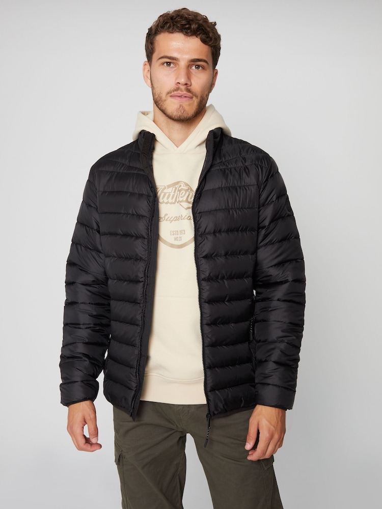 Threadbare Black Showerproof Matte Finish Padded Funnel Neck Jacket