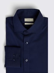 Cut to a tailored fit, Moss dark-blue shirt is one that ll soon work its way into your regulars. It s crafted in a cotton blend that goes heavy on the stretch, so you ll enjoy breathable comfort and welcome flexibility on tough days. Machine washable. 62% Cotton, 33% Polyester, 5% Elastane.