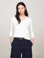 Tommy Hilfiger White Co Jersey Stitch V-Neck Sweater