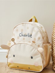 Prepare your adorable animal enthusiast for endless adventures with this personalised giraffe mini backpack. Designed to fit little shoulders, this backpack has everything your child needs to get them ready for a day at school or a trip into the great outdoors, with a zip-up main compartment, front pocket and two mesh side pouches. There’s lots of room for their favourite toys, drinks, snacks and books inside this neutral bag, which features an adorable giraffe design on the front, with a clever 3D design to wow your gorgeous giraffe fan. Make this a gift they’ll want to take everywhere with them by embroidering their name or initials onto the main body with our personalisation service. 100% Polyester. Due to their bespoke nature, most personalised items will be delivered with 7 days. estimated delivery will be confirmed at point of order. <br/> Please note that personalised items cannot be cancelled once your order is placed. <br/> Please do not include accents, special symbols or emojis as some of our processes will not allow this Please be aware – these items will be made especially for you, so they can only be returned if they are faulty, do not fit their description, or do not meet with your instruction.